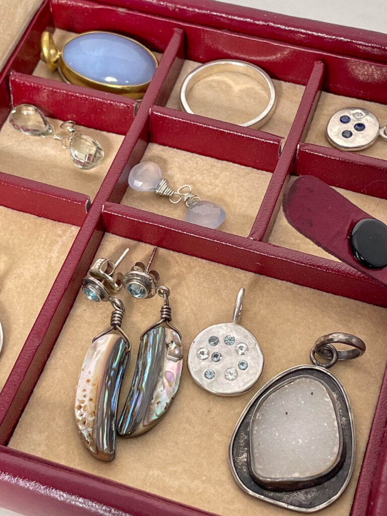 Ready to try a different approach? Seeking a better way, I developed a method that might seem counter-intuitive. Jewelry is not what we think of first when packing. Usually we come to jewelry at the end, when we are tired of the whole project. We throw in a few things and hope for the best.